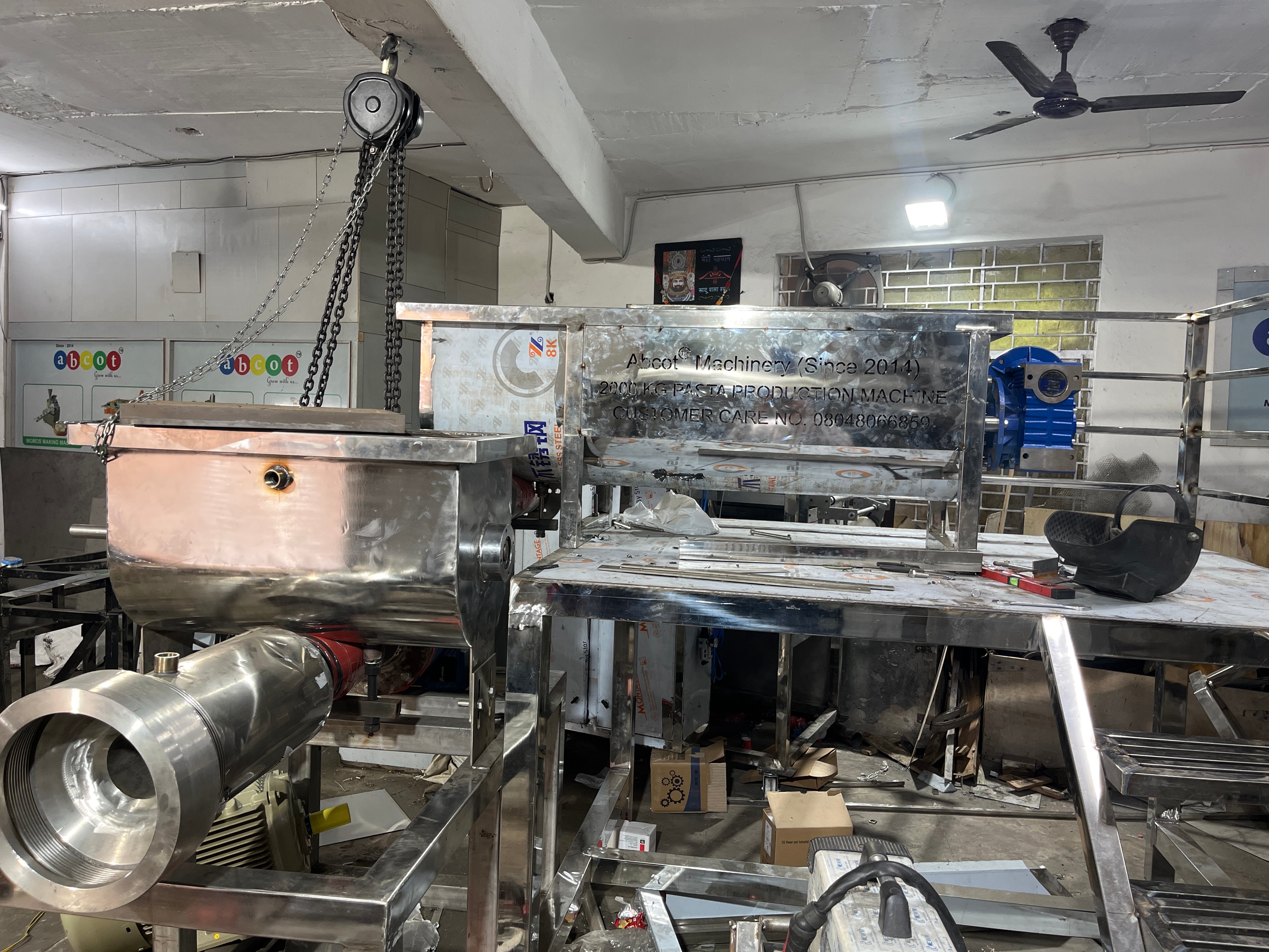Electric control panel fully automatic. Main motor speed variable. Cutter motor speed variable. Temperature controller automatic. All motor & Gear box Reputed company. With 3 dies (Macaroni, Fusilli Pasta, Vermicelli)
